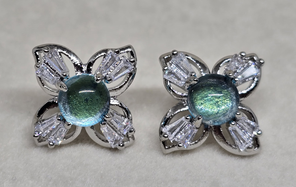 Koreai stílusú ezüst, négyszirmú virág fülbevaló kék kővel