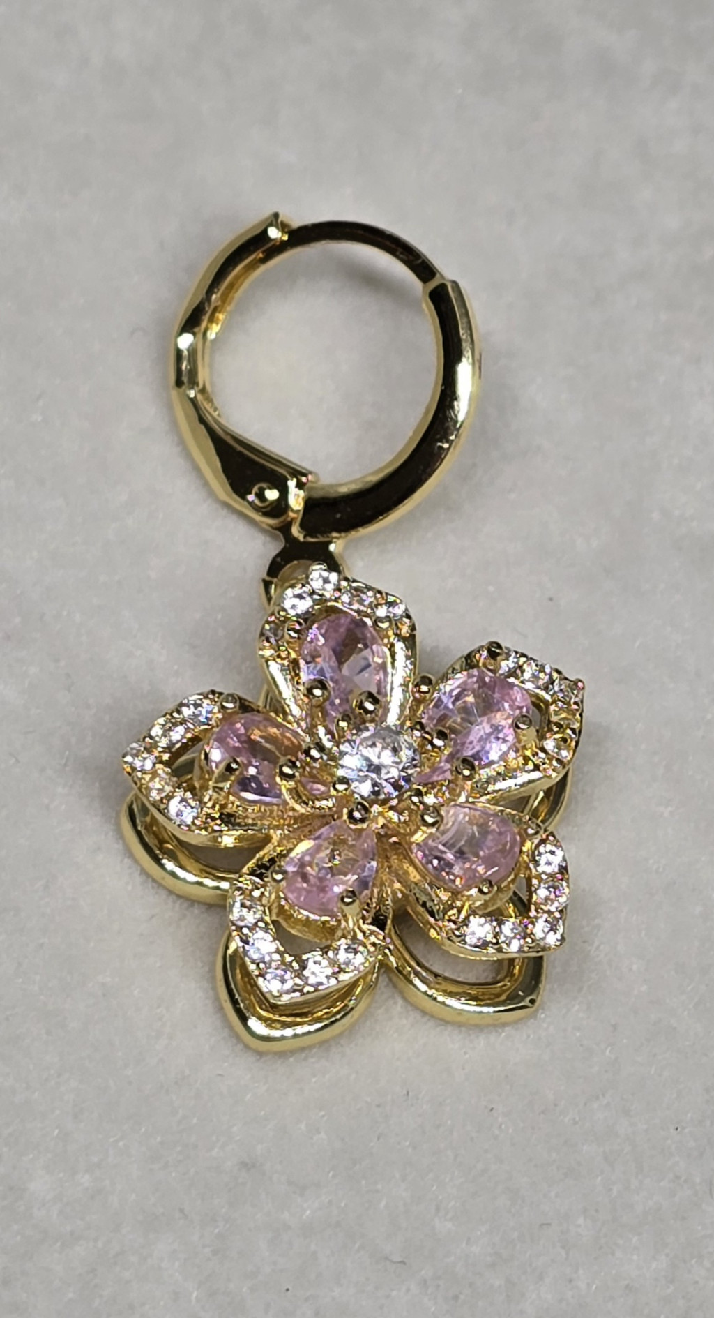 18K aranyozott rozsdamentes acél, cirkón kövekkel, forgó részekkel.