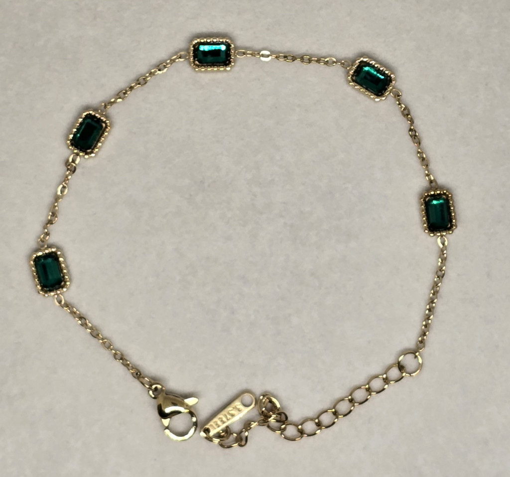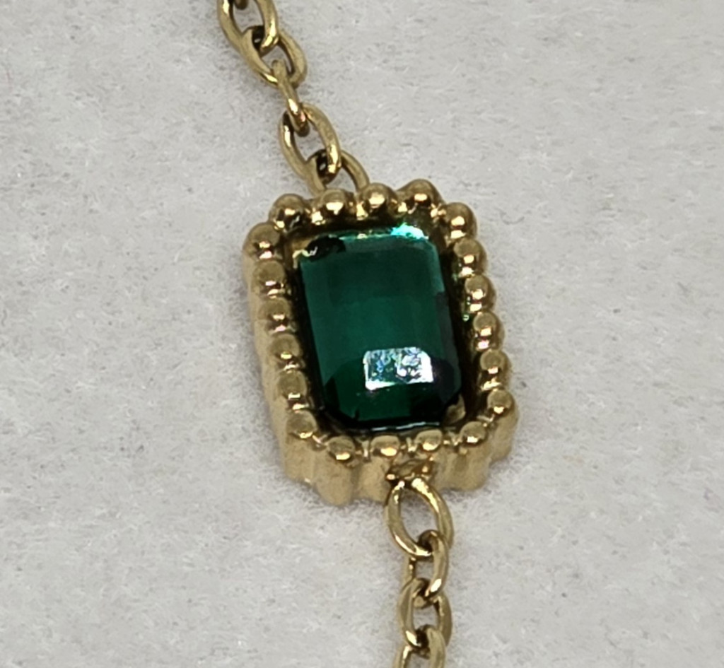 Szettbe rendezhető aranyszínű karkötő, zöld téglalap kövekkel