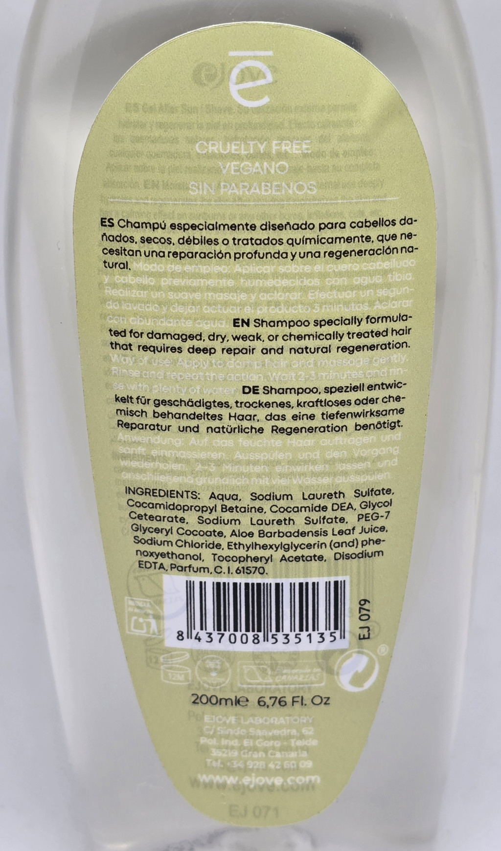 Ez az Aloe Verás sampon minden hajtípusra alkalmas, mélytisztító hatású, miközben védi és erősíti a hajat és a fejbőrt. Speciális formulájának köszönhetően ápolja a száraz, sérült hajat, a vékonyszálú vagy kémiailag károsított hajat természetes úton regenerálja. PH-semleges formulájával gyengéd, mégis hatékony tisztítást biztosít.