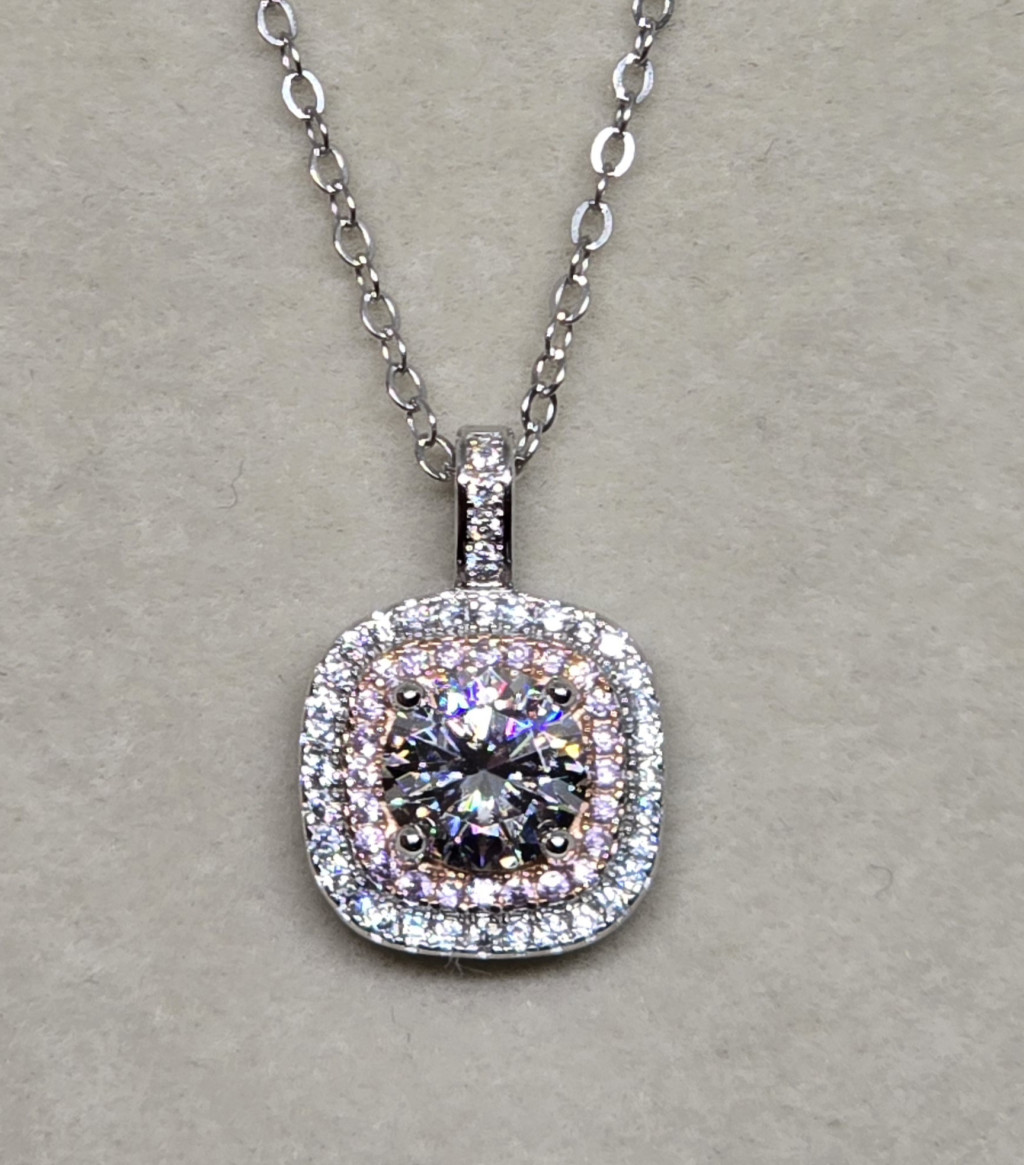 925-ös ezüst nyaklánc moissanite kővel.
