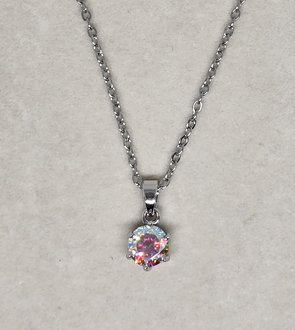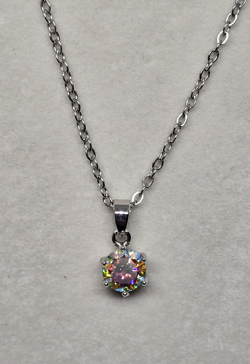 Ezüstszínű nyaklánc, hatkarmos, szivárványköves medállal