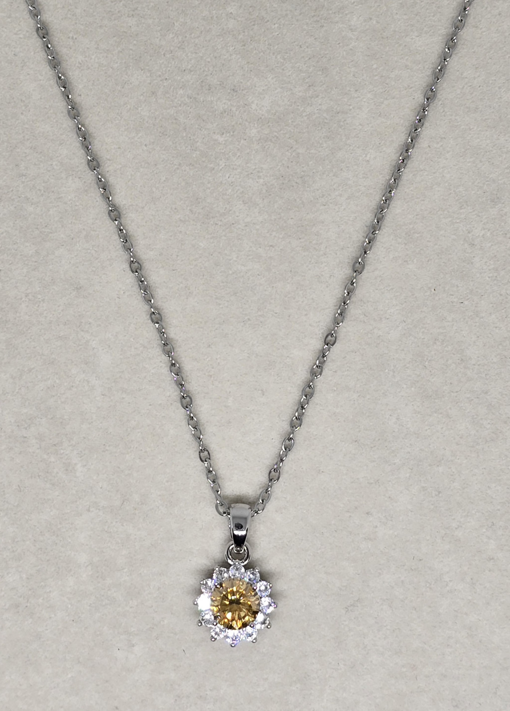925-ös ezüst bevonatú rozsdamentes acél nyaklánc, moissanite kövel.
