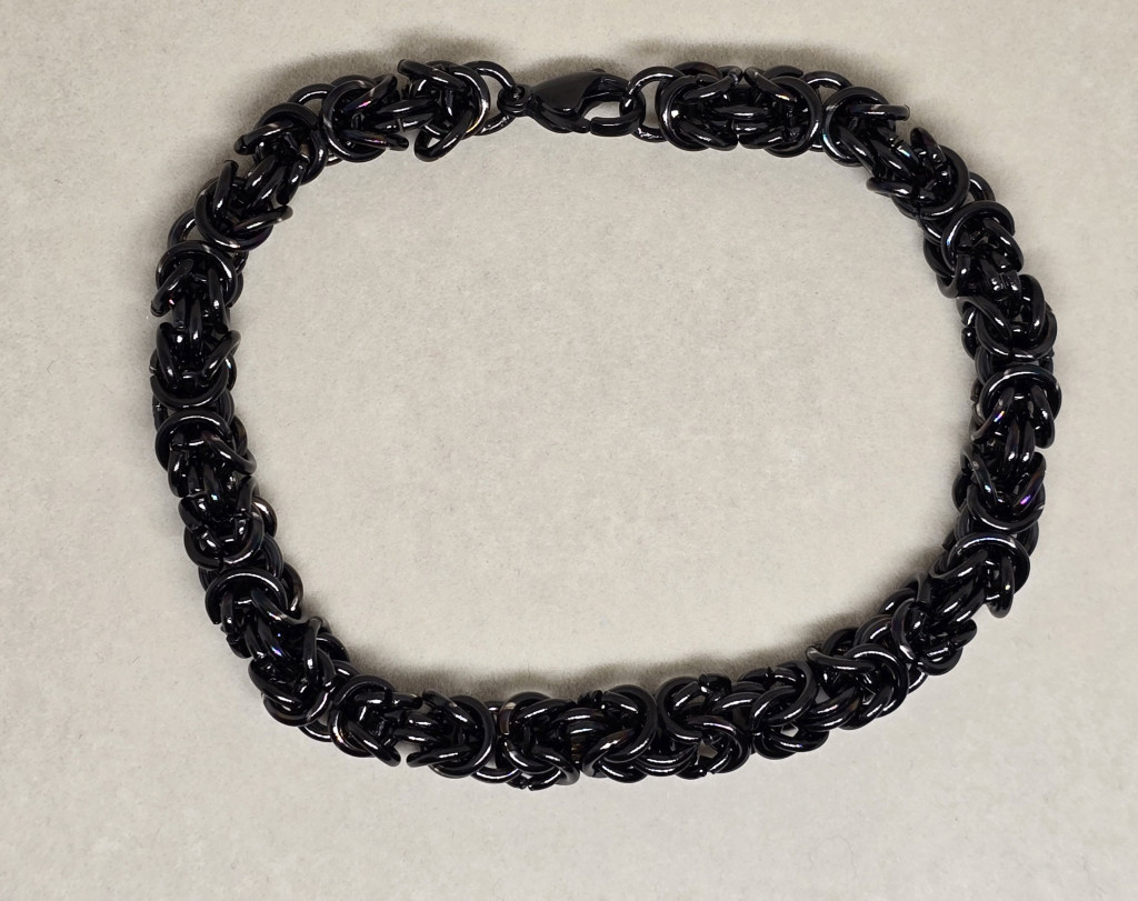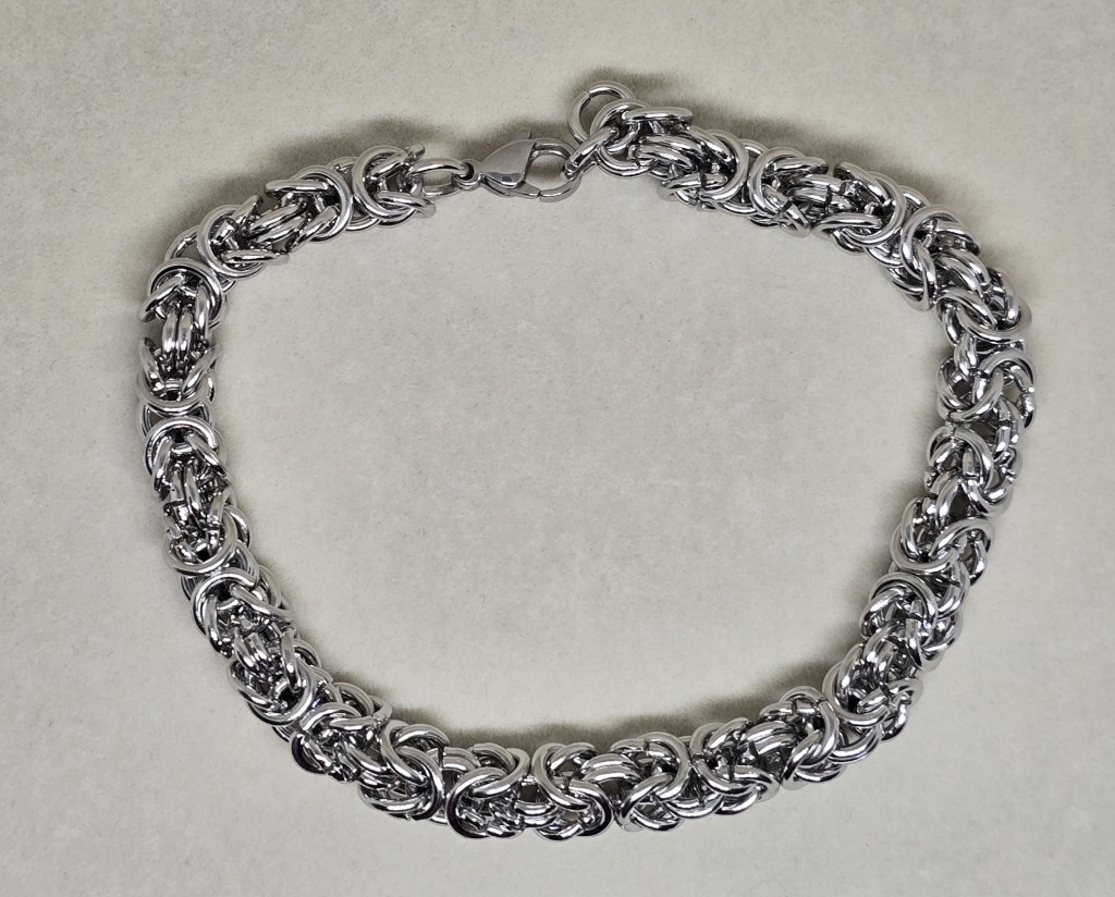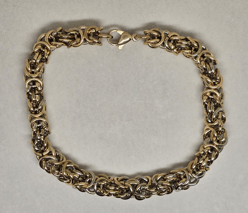 Titánium ötvözet - rozsdamentes acél, 18K arannyal bevont, ezüstözött, fekete. Hossza: 21 cm. Vastagság: 7 mm
