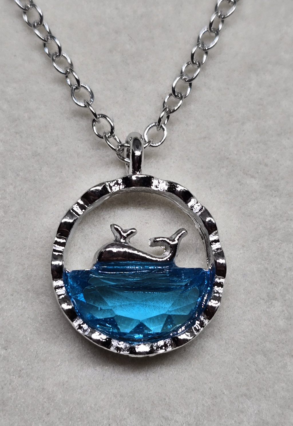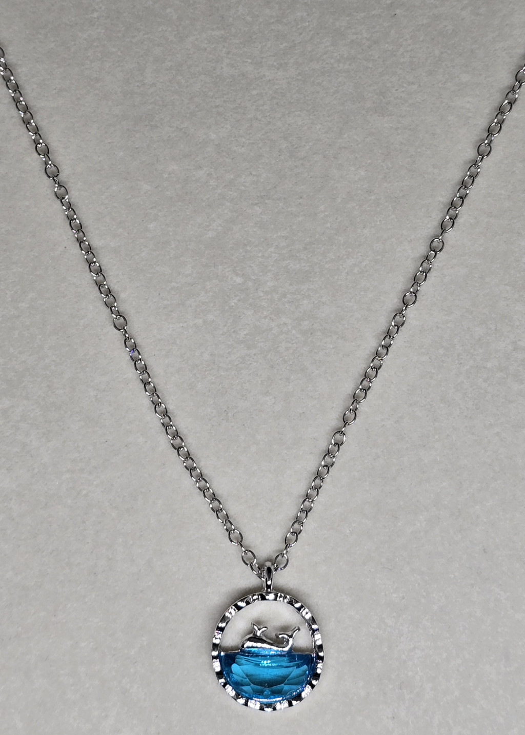 Tenger témájú nyaklánc, ezüst-kék bálnás